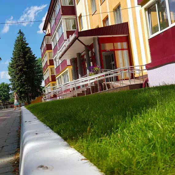 Санаторий расположен на красивом берегу реки Березина с великолепным пляжем. Он находится на окраине города, среди лиственных и еловых деревьев. Вдали от промышленных предприятий и шумных трасс. Это создаёт чистоту атмосферы, тишину, ощущение уединения и близости с природой.