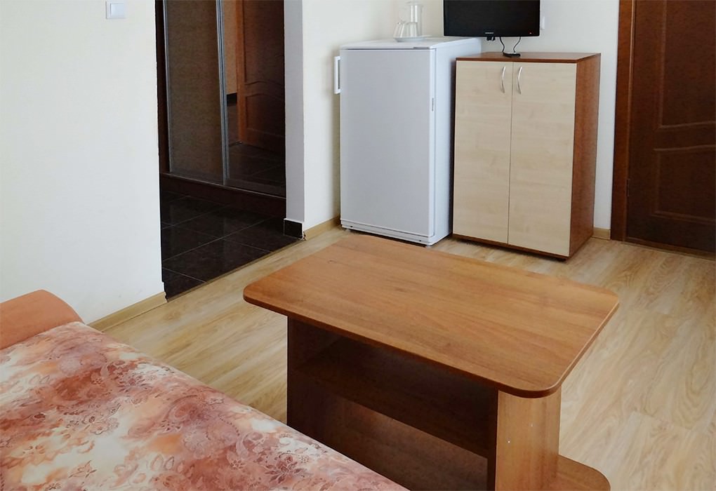 2 комнаты. 1 осн. место. В номере: телевизор; холодильник; душ; туалет; 1-спальная кровать; диван. 2 доп. места: