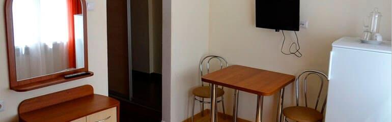 1 комната. 1 осн. место. В номере: телевизор; холодильник; душ; туалет; 2-спальная кровать.